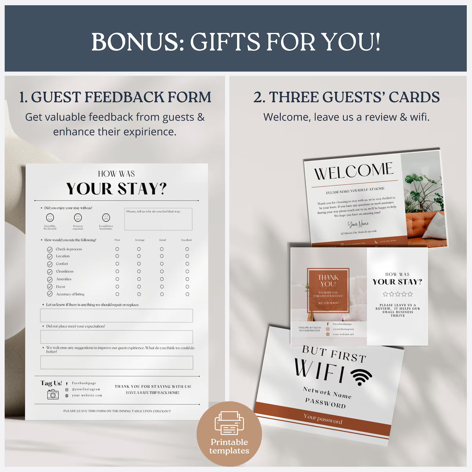 ❖ 3 Guest Cards (Wi-Fi / Welcome / Leave a Review)